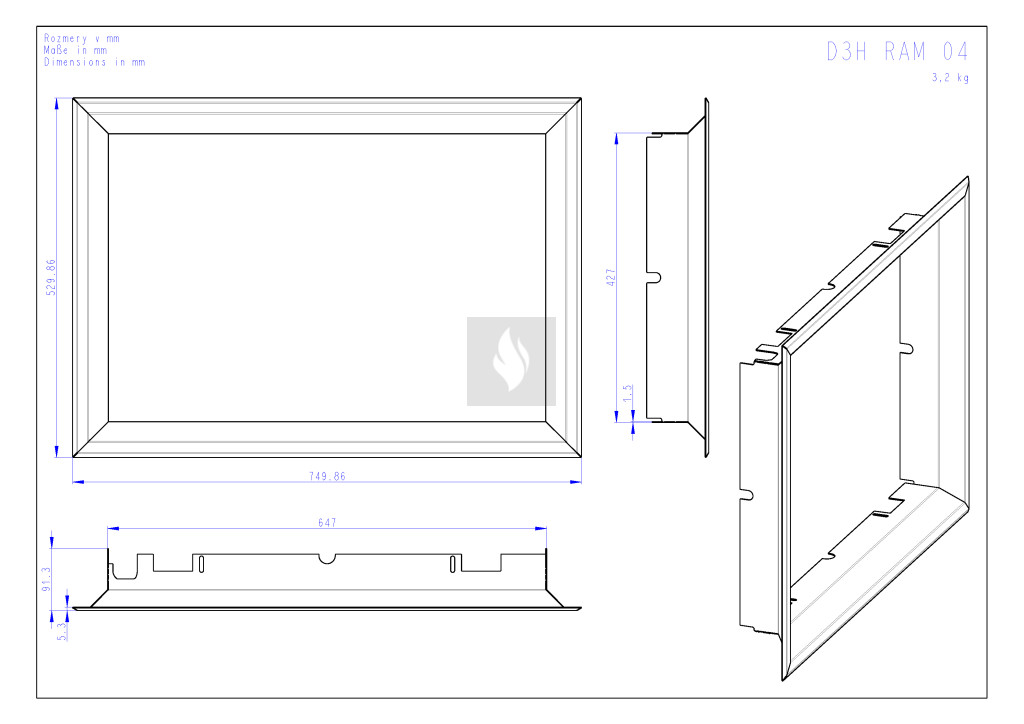 D3H RAM04 keskeny beépítő keret