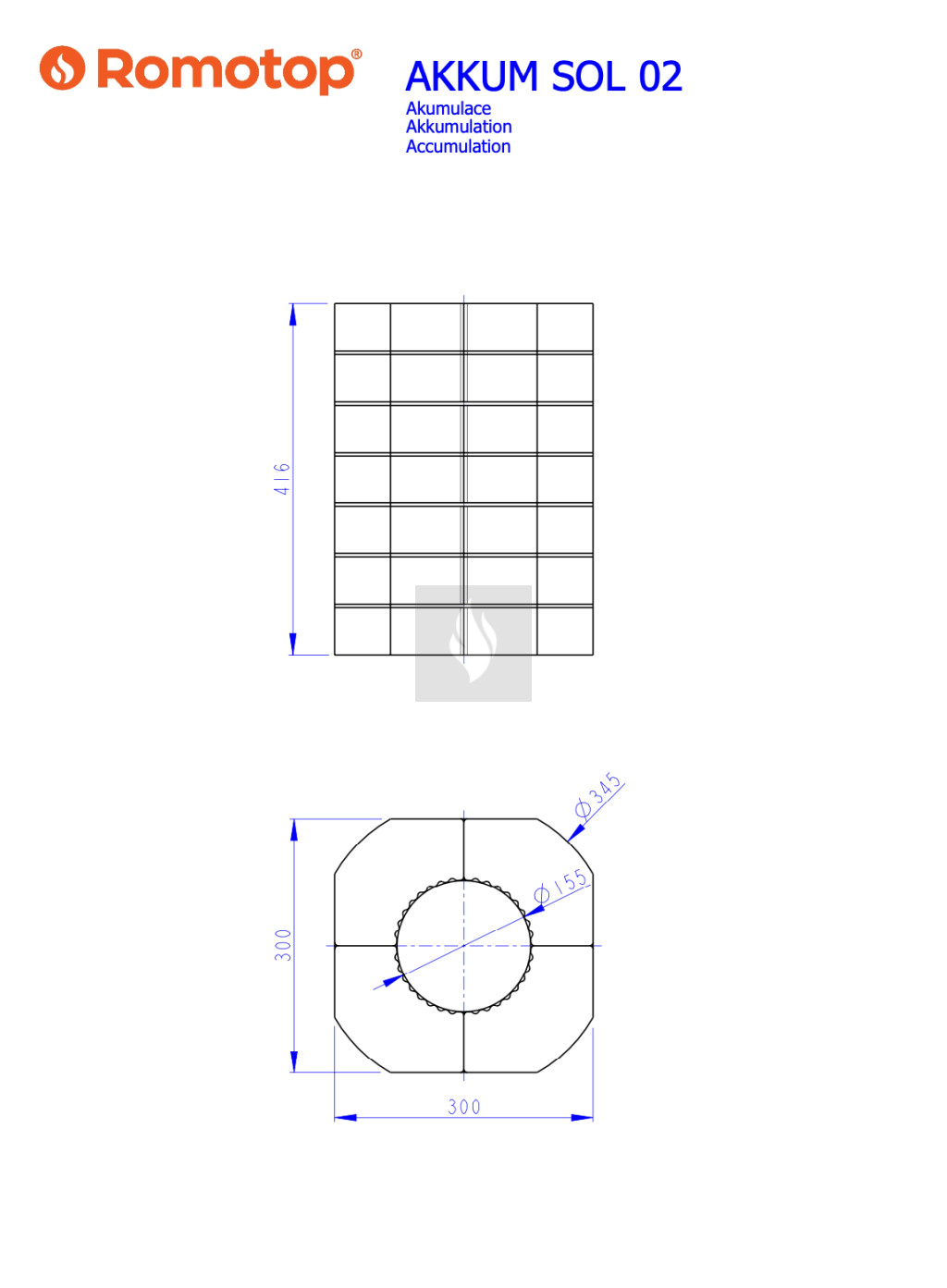 Ez a hőtároló szett a Romotop SOLID design kandallóhoz lett kifejlesztve. Az égőtér felett kialakított helyre szerelhető be. Segítségével növelhető a kandallókályhánk hőtároló képessége. A sugárzó fűtés 4 órával meghosszabbodik a hőtároló szett tömegének köszönhetően. Az akkumulációs szett súlya 98 kg.