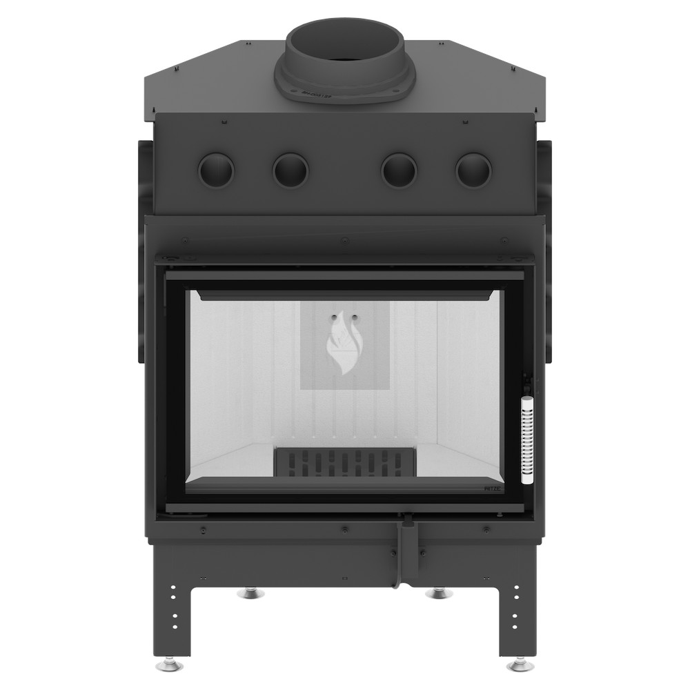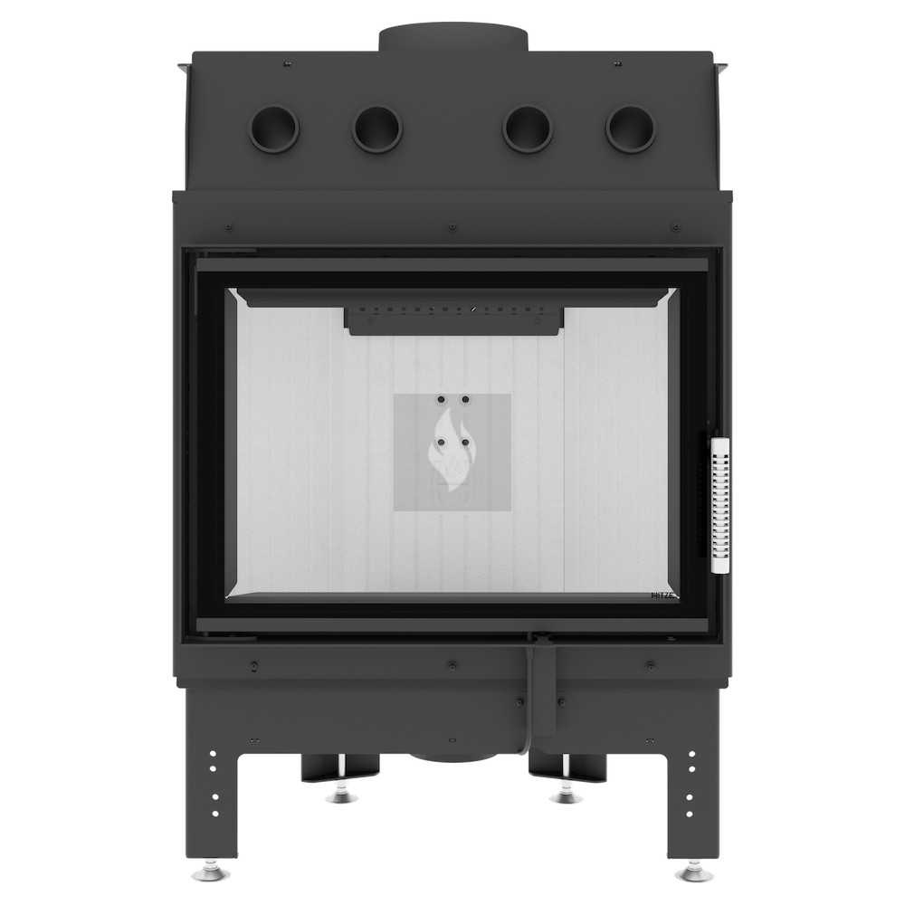 A ø125 / 150 mm-es légbevezető nyílás egy állítható fojtószeleppel simán szabályozza a kandalló belsejében az áramlást. Az állítható lábak biztonságos és stabil elhelyezést biztosítanak a kandallóbetét számára. Az opcionálisan +10 cm-es emelési lehetőséggel és +/- 3-5 cm-es beállítási lehetőséggel további rugalmasságot kínálnak.