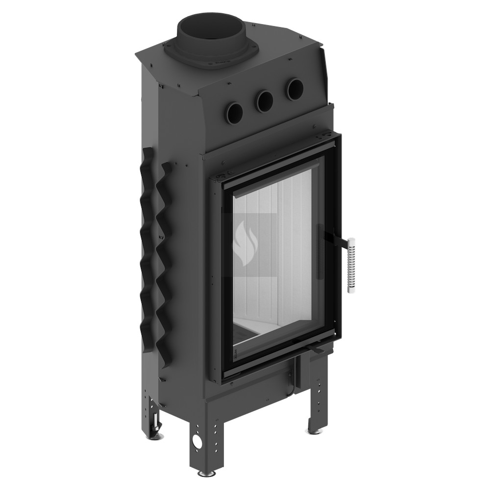 Az ø180 / 200 / 220 / 250 mm-es füstcső biztosítja a kandalló és a kéménycsatorna szoros csatlakozását, biztosítva a megfelelő égést és növelve a hőcsere területét. A hőcsövek növelik a hőcserélési és felhalmozási területet (modelltől függően 3-6 db). Az acél ajtó megnövelt merevségű profilból készült, ami garantálja az ajtó szorosságát és szilárdságát. A hőálló kerámiaüveg (DECOR üveg) akár 800°C-ig ellenáll a működési hőmérsékletnek, és opcionálisan dupla üvegezési rendszerben is elérhető.