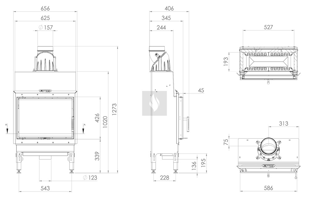 Az integrált, négy szintű fojtószelep ø125 mm-es beömlővel szabályozza az elsődleges és másodlagos levegő áramlását. A rostély nélküli égéstér kényelmes tisztítást tesz lehetővé egy hamuporszívóval. Az EASY UP állítható lábak biztonságos és stabil elhelyezést biztosítanak a kandallóbetét számára, és finoman szabályozhatók 4 cm-es tartományban, lépésenként 0-4, 5-9, 13,5 cm-ig. Az EASY START rendszer pedig független levegőszabályozással segíti a tűzgyújtást.