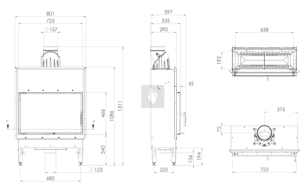 Az integrált, négy szintű fojtószelep ø125 mm-es beömlővel szabályozza az elsődleges és másodlagos levegő áramlását. A rostély nélküli égéstér kényelmes tisztítást tesz lehetővé egy hamuporszívóval. Az EASY UP állítható lábak biztonságos és stabil elhelyezést biztosítanak a kandallóbetét számára, és finoman szabályozhatók 4 cm-es tartományban, lépésenként 0-4, 5-9, 13,5 cm-ig. Az EASY START rendszer pedig független levegőszabályozással segíti a tűzgyújtást.