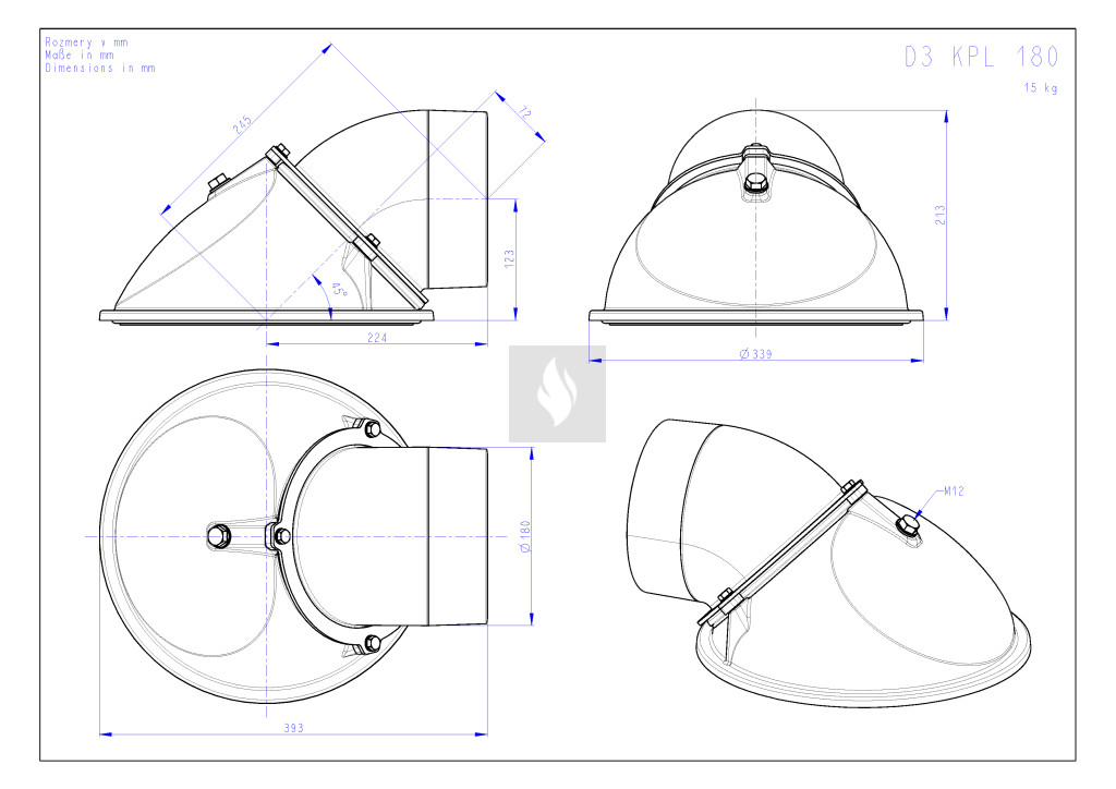 Öntvény füstgyűjtő kúp, D=180mm-es füstcső csatlakozóval