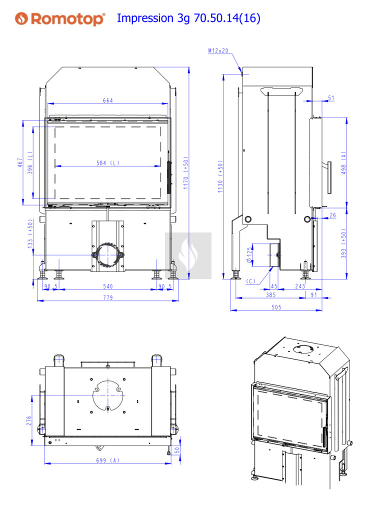 A Romotop kandallóbetétek meghatározó jellemzője a letisztult, modern vonalvezetés. A speciális samott anyaggal bélelt égéstér megvédi a kályhát a vetemedéstől, valamint javítja az égési folyamat hatékonyságát. A lángok a világos színű égőtér faláról visszatükröződve teljes fényükben ragyoghatnak, a látvány még akkor is káprázatos, amikor a tűztérben már csak a pislákoló parázs marad. A további fontos jellemzője az irányított elsődleges és másodlagos égés, a légmosó üvegtisztító-rendszer, és a felső füstgáz-kivezetés. Az égőtérben 50 cm-es fahasábokat is tüzelhetünk. A Romotop kandallók Csehországban készülnek, megfelelnek a hatályos EU-szabványoknak és követelményeknek. Romotop - teljesítményre tervezve.
