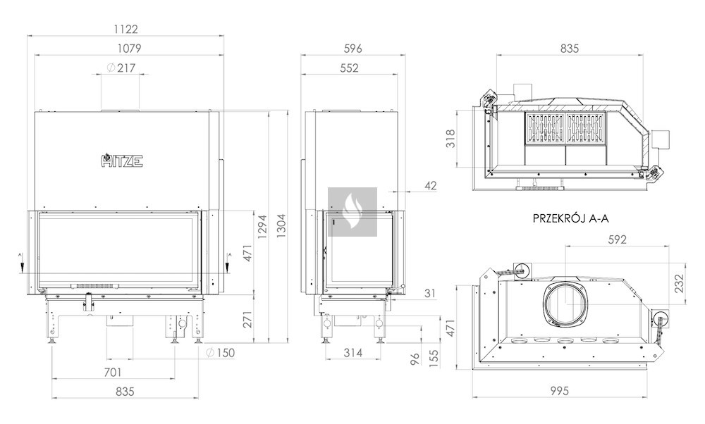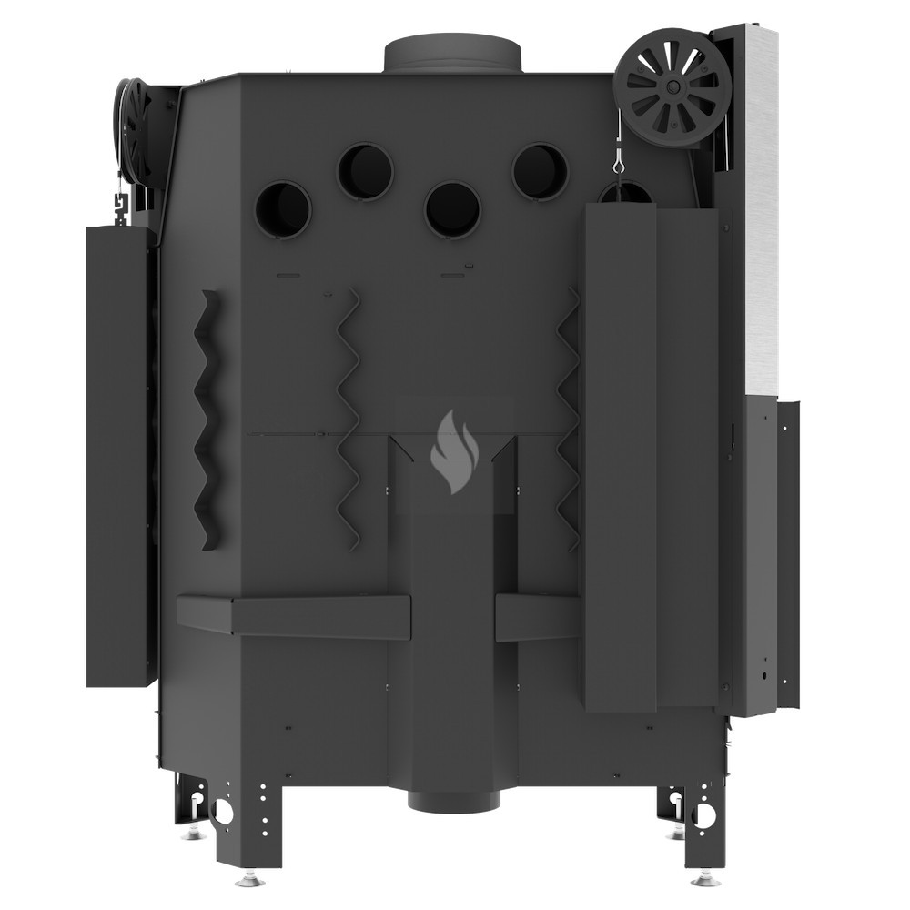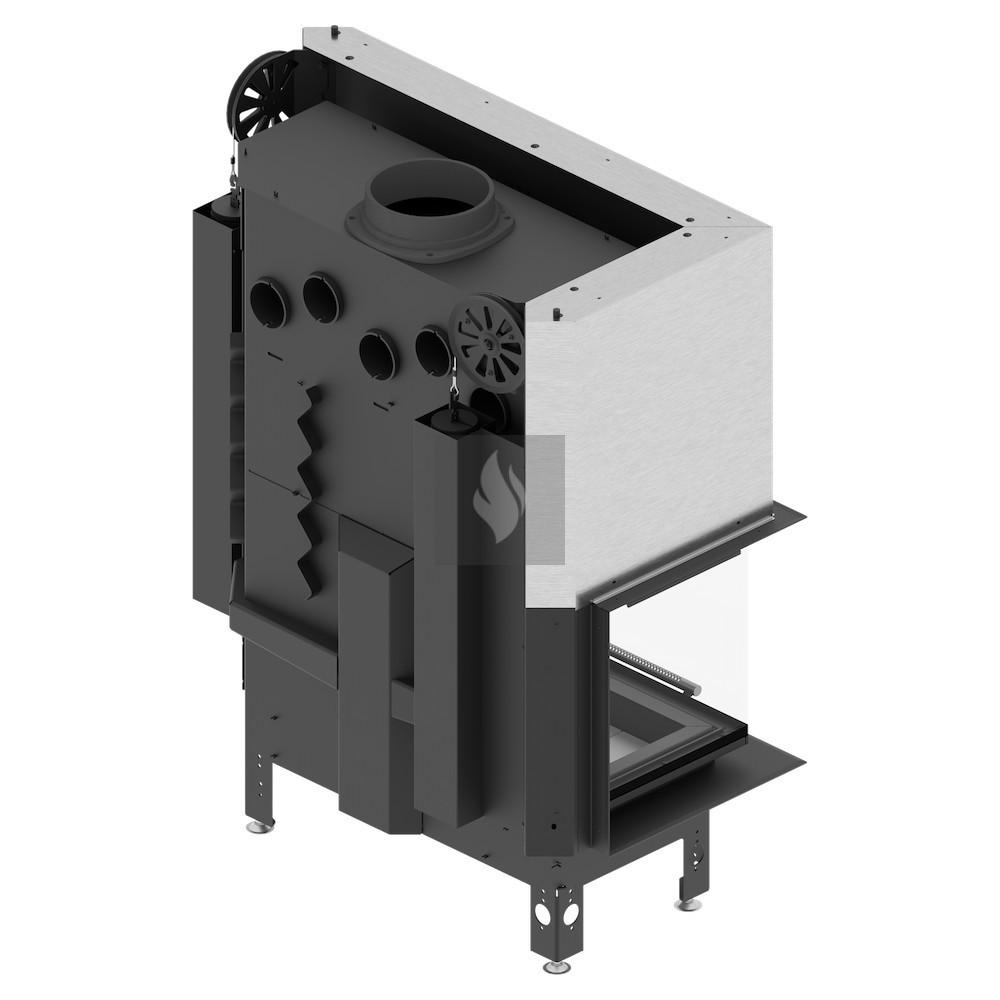 Az ø180 / 200 / 220 / 250 mm-es füstcső biztosítja a kandalló és a kéménycsatorna szoros csatlakozását, biztosítva a megfelelő égést és növelve a hőcsere területét. A hőcsövek növelik a hőcserélési és felhalmozási területet (modelltől függően 3-6 db). Az acél ajtó megnövelt merevségű profilból készült, ami garantálja az ajtó szorosságát és szilárdságát. A hőálló kerámiaüveg (DECOR üveg) akár 800°C-ig ellenáll a működési hőmérsékletnek, és opcionálisan dupla üvegezési rendszerben is elérhető.