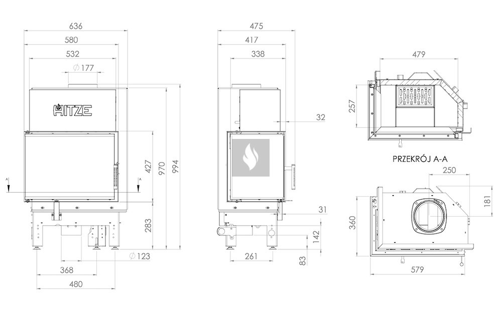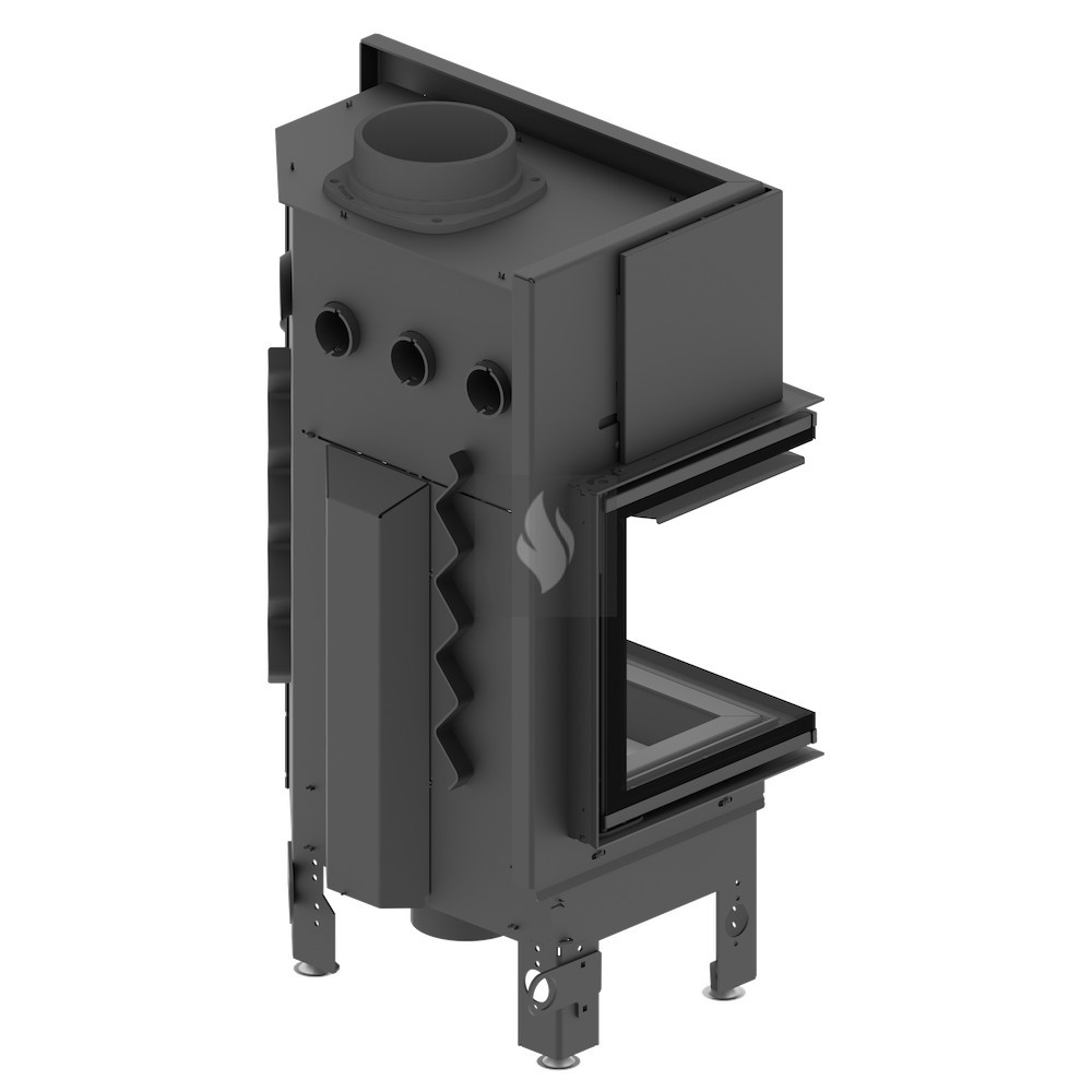 Az ø180 / 200 / 220 / 250 mm-es füstcső biztosítja a kandalló és a kéménycsatorna szoros csatlakozását, biztosítva a megfelelő égést és növelve a hőcsere területét. A hőcsövek növelik a hőcserélési és felhalmozási területet (modelltől függően 3-6 db). Az acél ajtó megnövelt merevségű profilból készült, ami garantálja az ajtó szorosságát és szilárdságát. A hőálló kerámiaüveg (DECOR üveg) akár 800°C-ig ellenáll a működési hőmérsékletnek, és opcionálisan dupla üvegezési rendszerben is elérhető.