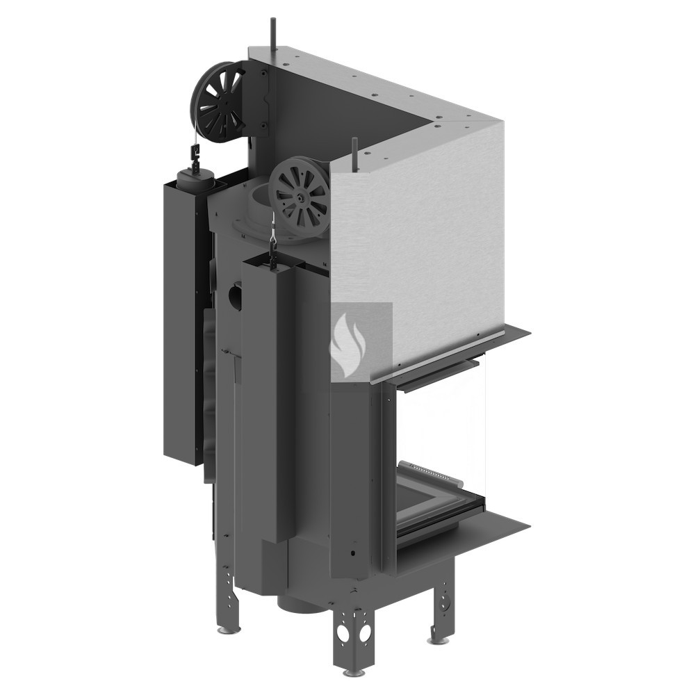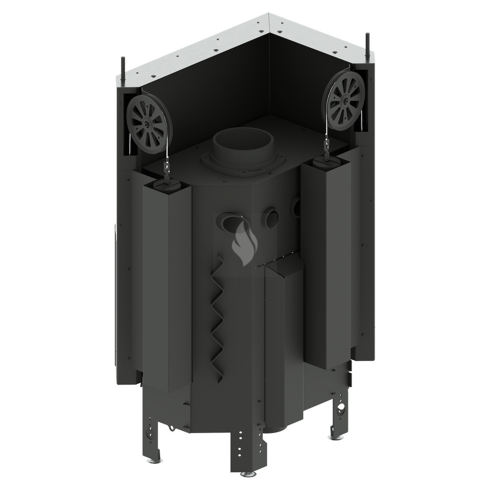 Az ø180 / 200 / 220 / 250 mm-es füstcső biztosítja a kandalló és a kéménycsatorna szoros csatlakozását, biztosítva a megfelelő égést és növelve a hőcsere területét. A hőcsövek növelik a hőcserélési és felhalmozási területet (modelltől függően 3-6 db). Az acél ajtó megnövelt merevségű profilból készült, ami garantálja az ajtó szorosságát és szilárdságát. A hőálló kerámiaüveg (DECOR üveg) akár 800°C-ig ellenáll a működési hőmérsékletnek, és opcionálisan dupla üvegezési rendszerben is elérhető.