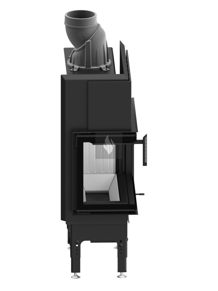 Az integrált, négy szintű fojtószelep ø125 mm-es beömlővel szabályozza az elsődleges és másodlagos levegő áramlását. A rostély nélküli égéstér kényelmes tisztítást tesz lehetővé egy hamuporszívóval. Az EASY UP állítható lábak biztonságos és stabil elhelyezést biztosítanak a kandallóbetét számára, és finoman szabályozhatók 4 cm-es tartományban, lépésenként 0-4, 5-9, 13,5 cm-ig. Az EASY START rendszer pedig független levegőszabályozással segíti a tűzgyújtást.