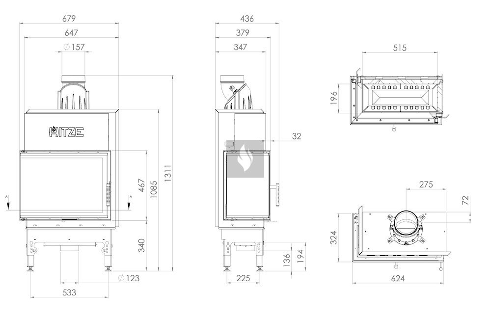 HITZE HST 59x43-L Légfűtéses kandallóbetét