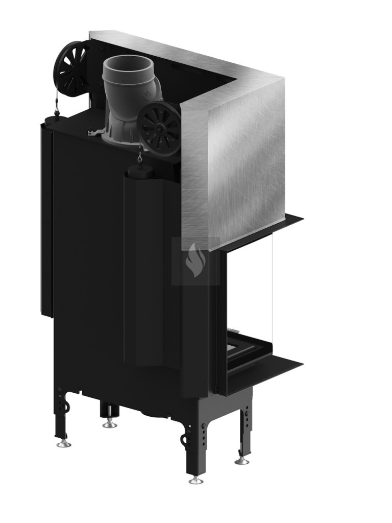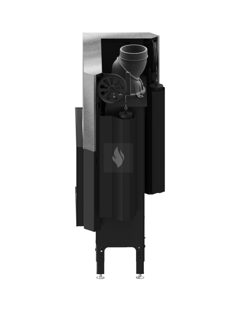 Az integrált, négy szintű fojtószelep ø125 mm-es beömlővel szabályozza az elsődleges és másodlagos levegő áramlását. A rostély nélküli égéstér kényelmes tisztítást tesz lehetővé egy hamuporszívóval. Az EASY UP állítható lábak biztonságos és stabil elhelyezést biztosítanak a kandallóbetét számára, és finoman szabályozhatók 4 cm-es tartományban, lépésenként 0-4, 5-9, 13,5 cm-ig. Az EASY START rendszer pedig független levegőszabályozással segíti a tűzgyújtást.
