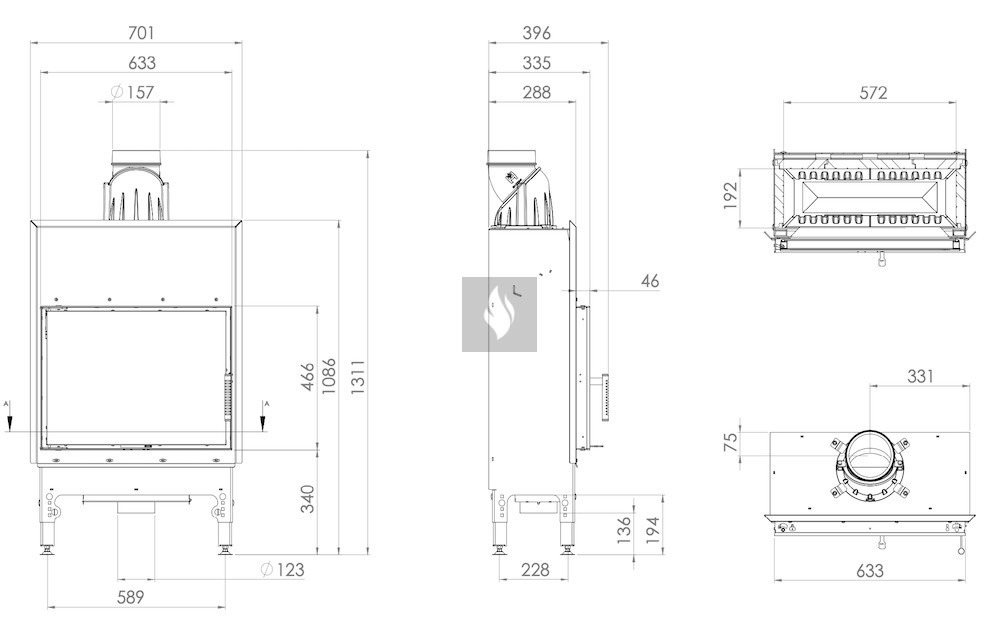 Az integrált, négy szintű fojtószelep ø125 mm-es beömlővel szabályozza az elsődleges és másodlagos levegő áramlását. A rostély nélküli égéstér kényelmes tisztítást tesz lehetővé egy hamuporszívóval. Az EASY UP állítható lábak biztonságos és stabil elhelyezést biztosítanak a kandallóbetét számára, és finoman szabályozhatók 4 cm-es tartományban, lépésenként 0-4, 5-9, 13,5 cm-ig. Az EASY START rendszer pedig független levegőszabályozással segíti a tűzgyújtást.