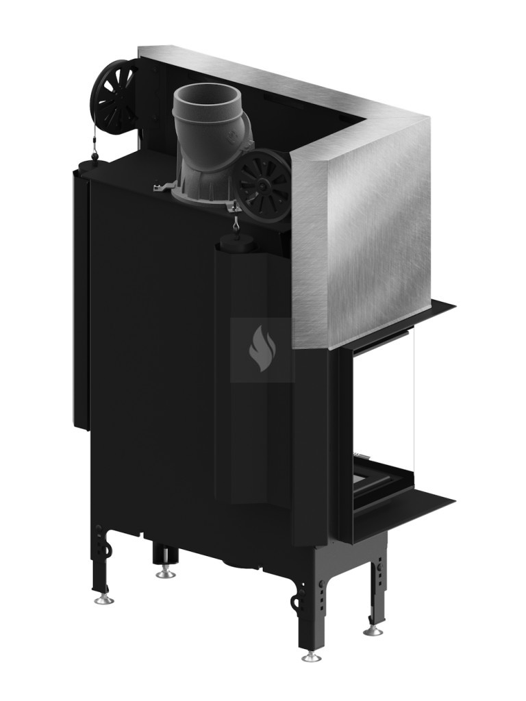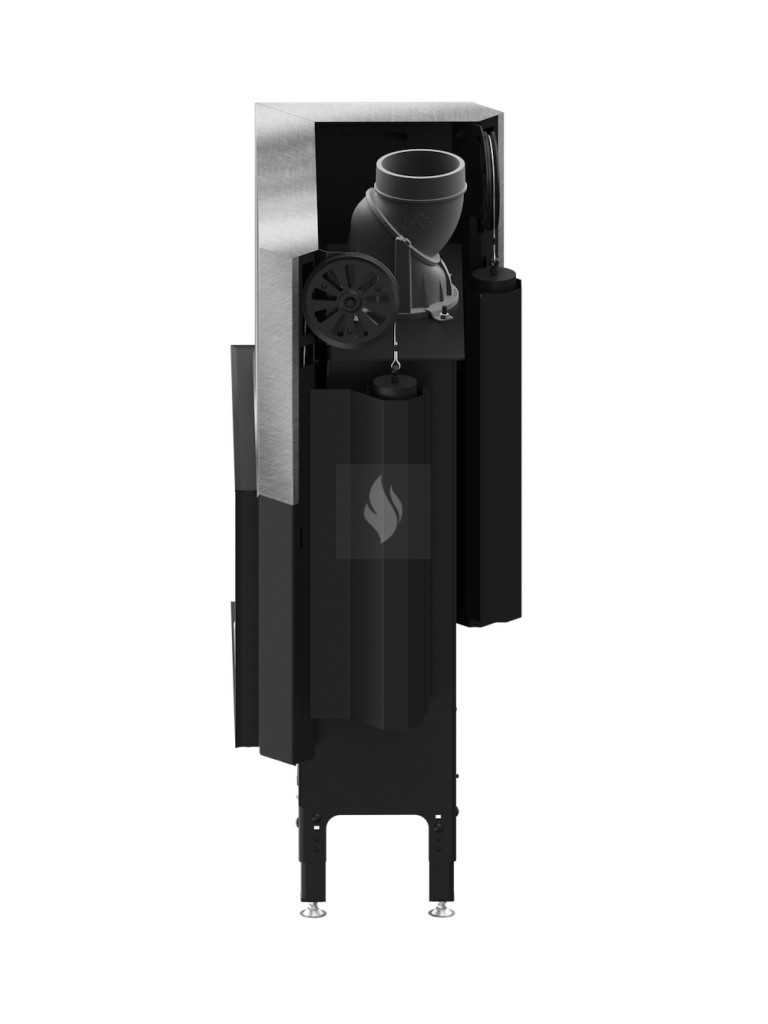 Az integrált, négy szintű fojtószelep ø125 mm-es beömlővel szabályozza az elsődleges és másodlagos levegő áramlását. A rostély nélküli égéstér kényelmes tisztítást tesz lehetővé egy hamuporszívóval. Az EASY UP állítható lábak biztonságos és stabil elhelyezést biztosítanak a kandallóbetét számára, és finoman szabályozhatók 4 cm-es tartományban, lépésenként 0-4, 5-9, 13,5 cm-ig. Az EASY START rendszer pedig független levegőszabályozással segíti a tűzgyújtást.