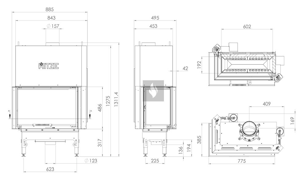 HITZE HST 68x43-LG Liftes Légfűtéses kandallóbetét