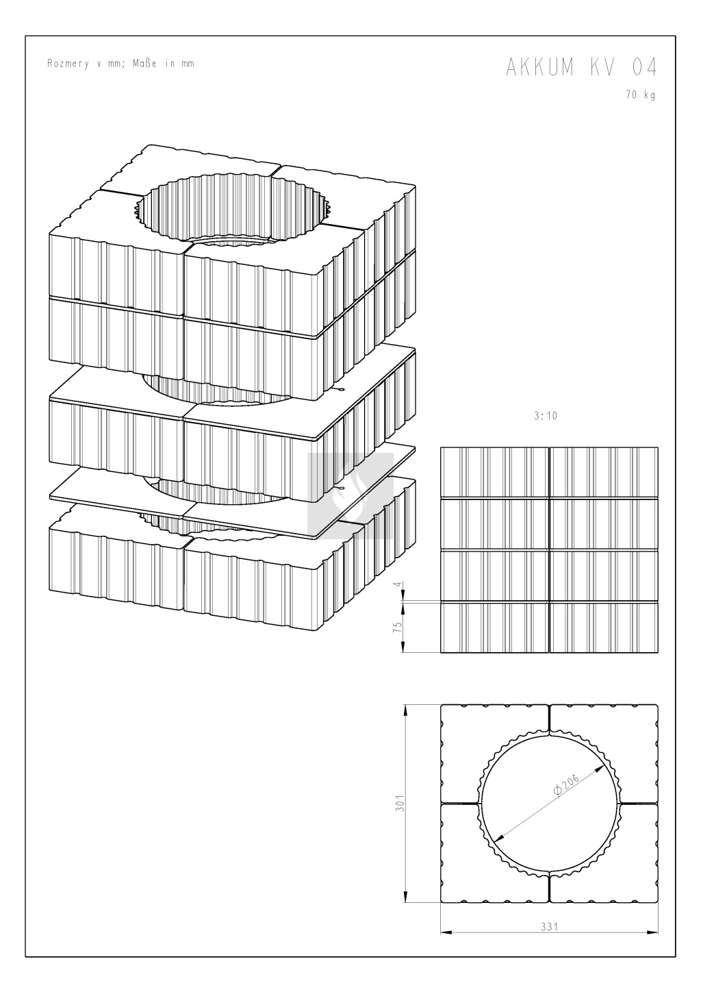 A Romotop MAMMOTH akkumulációs szett segítségével növelhető a kandallónk hőtároló képessége, a kandallóbetét használatát követően még hosszú ideig sugározza a hőt. A maximális hőátadás érdekében a hőtároló gyűrűk között fémlamellák vannak elhelyezve, ez növeli a hőtárolás sebességét. Telepítése egyszerű, a kandallóbetét felső részén a füstcső körül kell elhelyezni. 200 mm-es füstgázelvezetéssel rendelkező kandallóbetéthez használható. A hőtároló szett súlya: 70 kg.