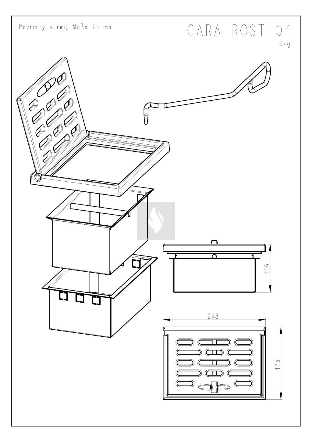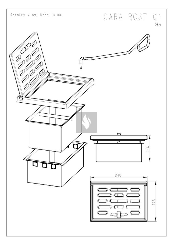 A rostély az a része a kandallónak, amelyen a tüzelőanyag elég, vagyis ez a tartozék tartja a tüzelőanyagot, illetve ereszti át az égéshez szükséges levegőt is. Ez a típus kimondottan a Cara design kandallókhoz használható.