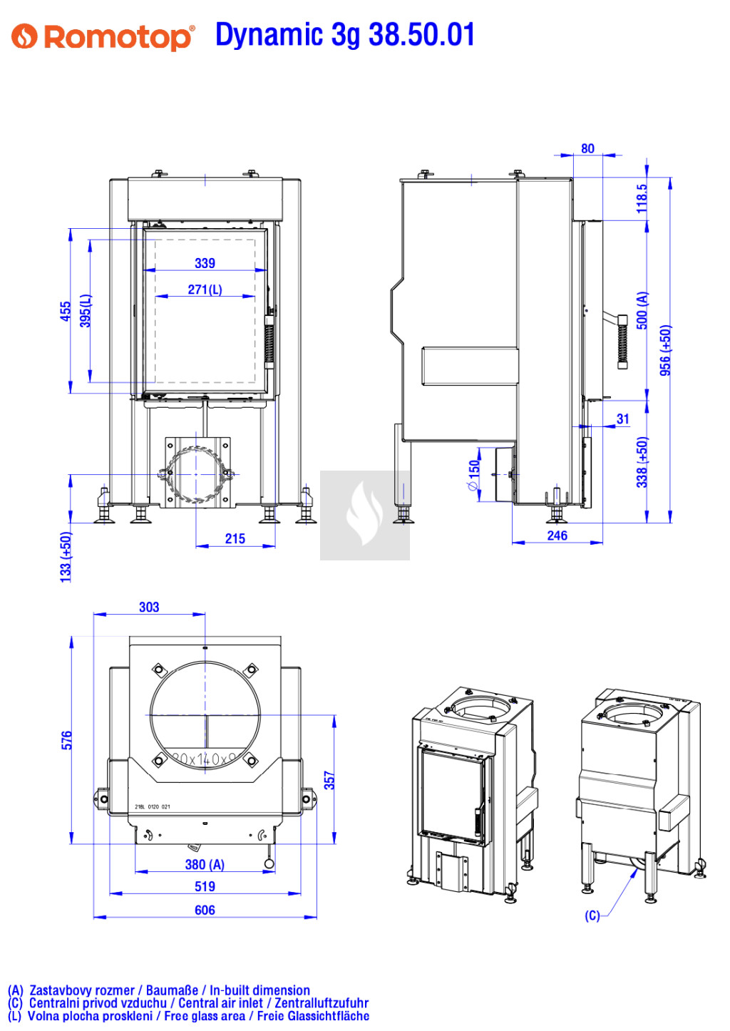 Romotop DYNAMIC 3G 38.50.01 Légfűtéses kandallóbetét