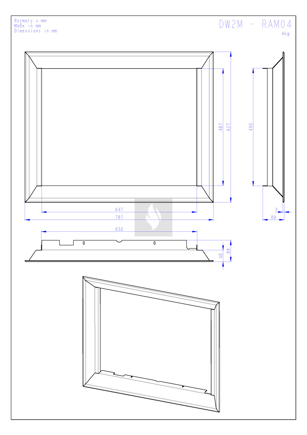 RAM04 süllyesztett beépítő keret Romotop DYNAMIC DW2M - DWB2M kandallóbetéthez
