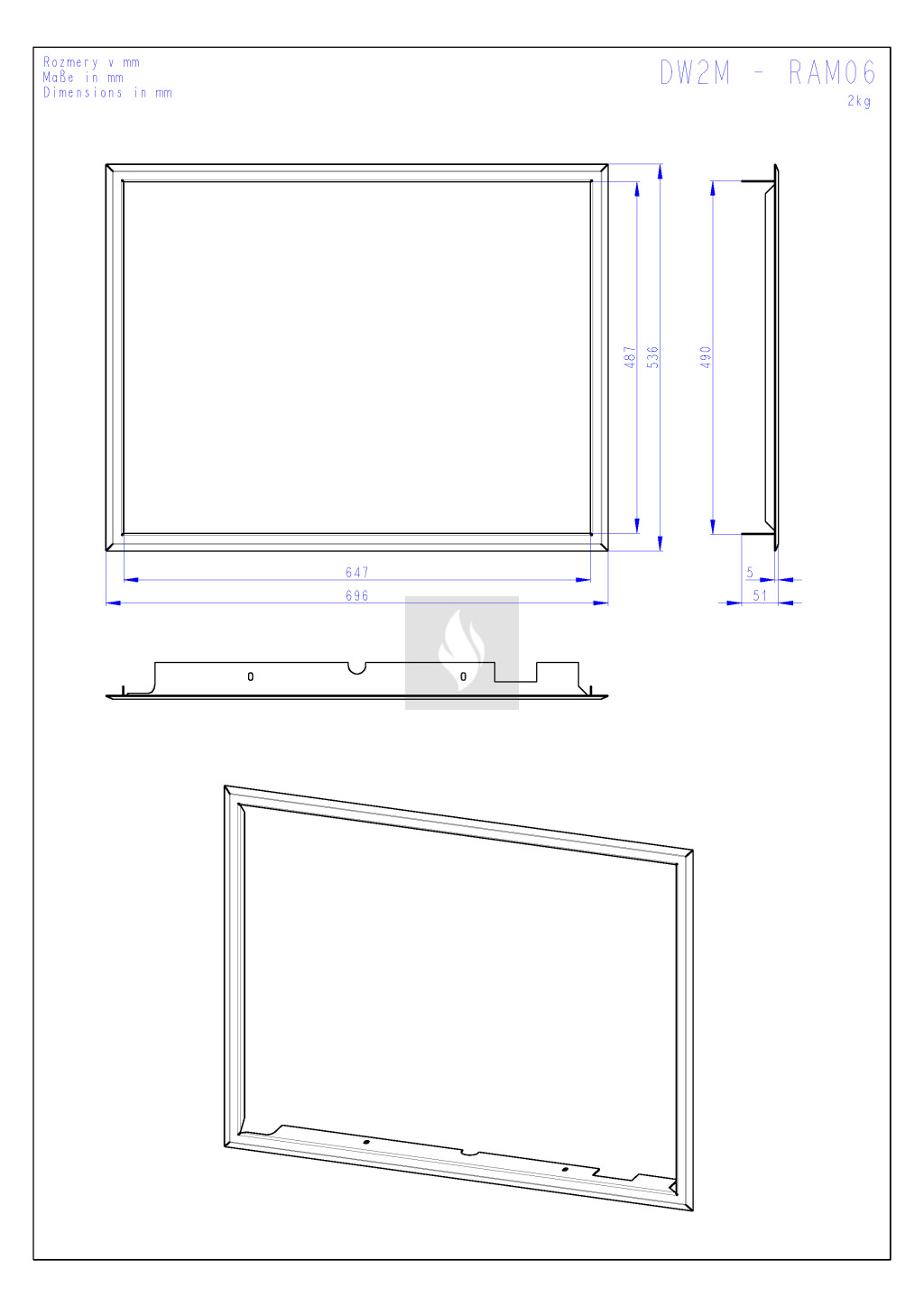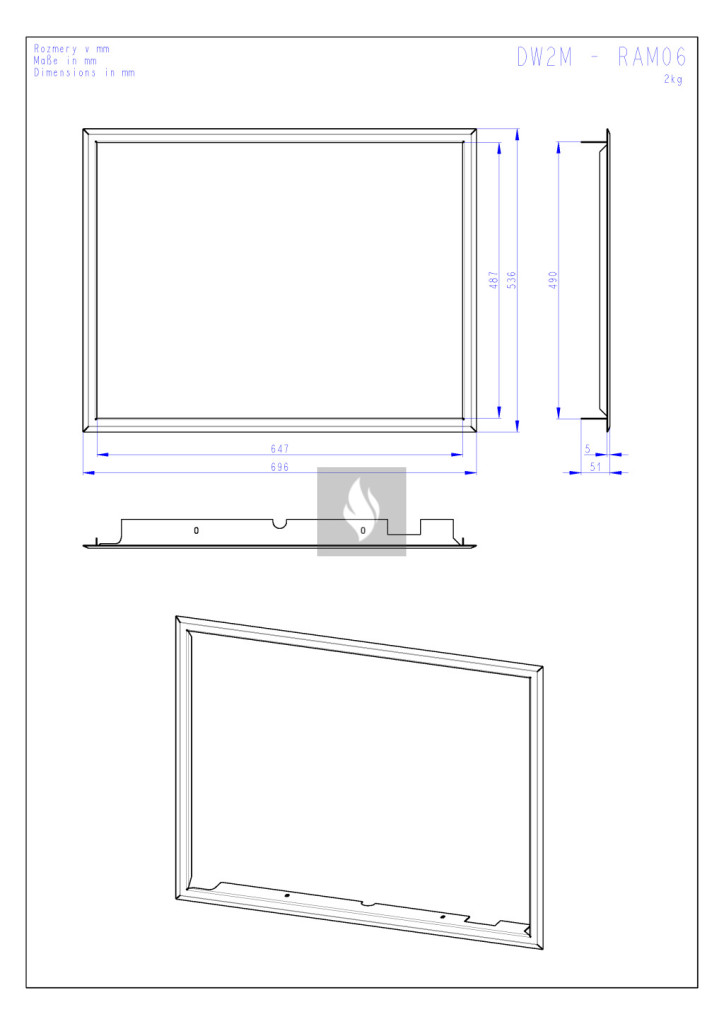 RAM06 keskeny beépítő keret Romotop DYNAMIC DW2M - DWB2M kandallóbetéthez