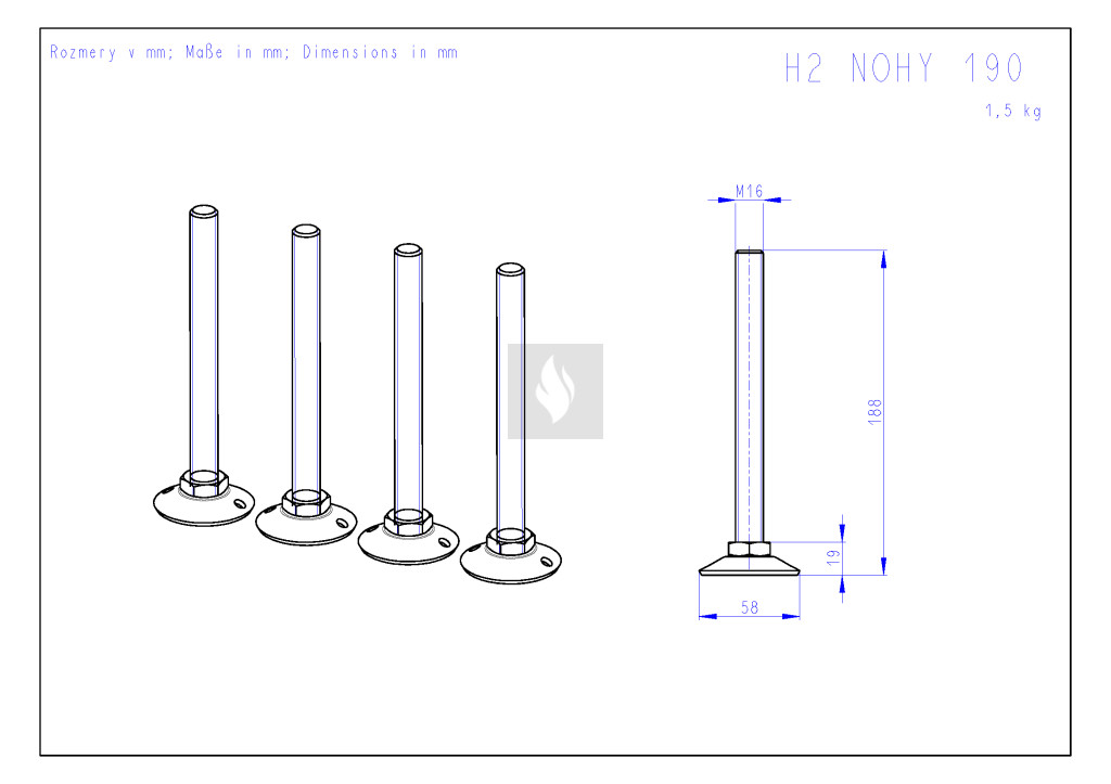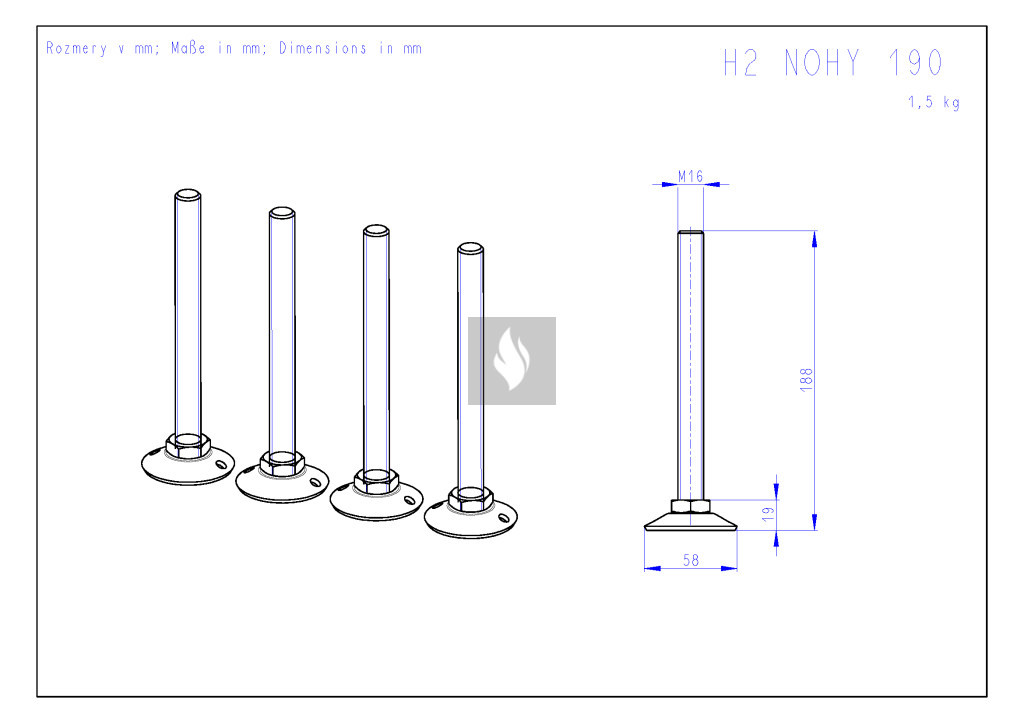 Romotop állítható lábak 190 mm kandallóbetéthez