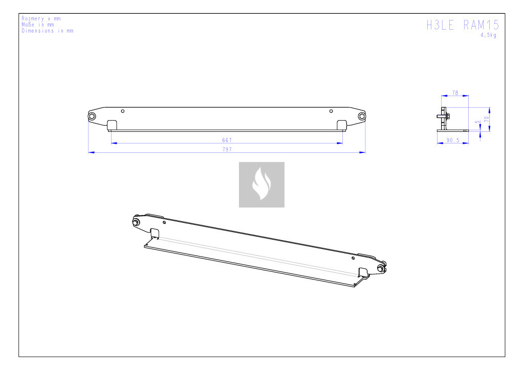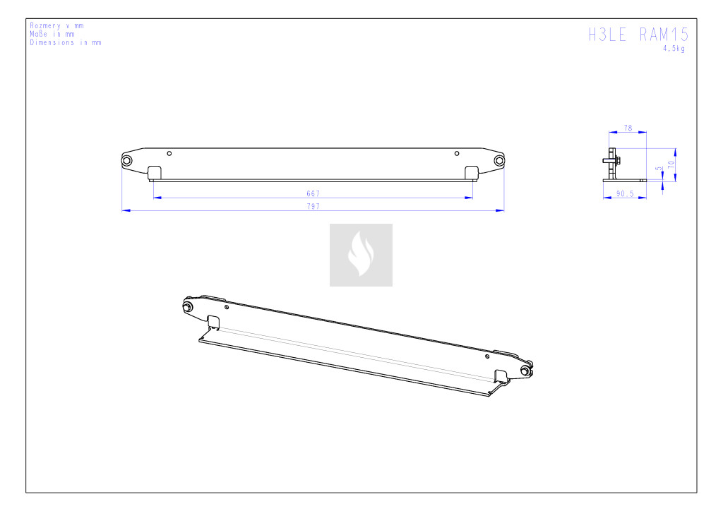 RAM15 terhelhető beépítést elősegítő felső fémkeret Romotop HEAT H3LE kandallóbetéthez