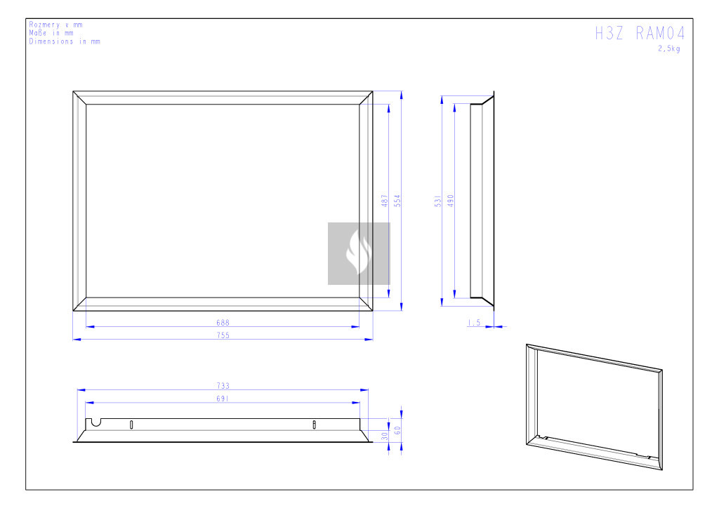 RAM04 süllyesztett beépítő keret Romotop HEAT HT3Z kandallóbetéthez