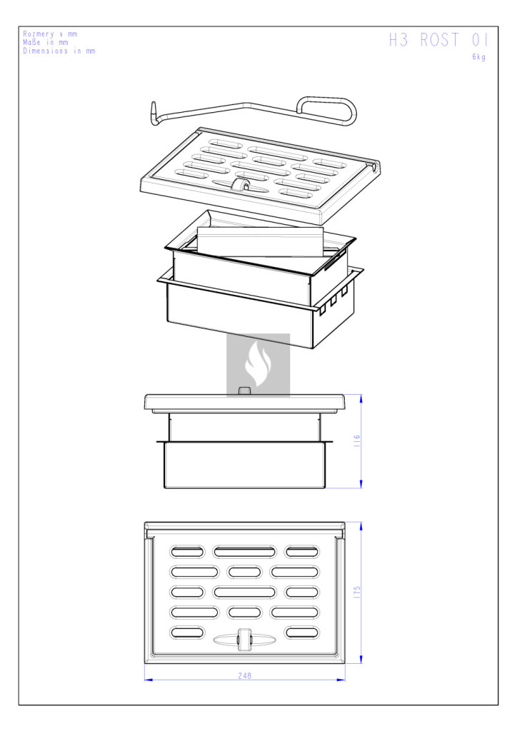 A rostély az a része a kandallónak, amelyen a tüzelőanyag elég, vagyis ez a tartozék tartja a tüzelőanyagot, illetve ereszti át az égéshez szükséges levegőt is. A kapcsolódó termékekben szereplő kandallóbetétekhez használható.