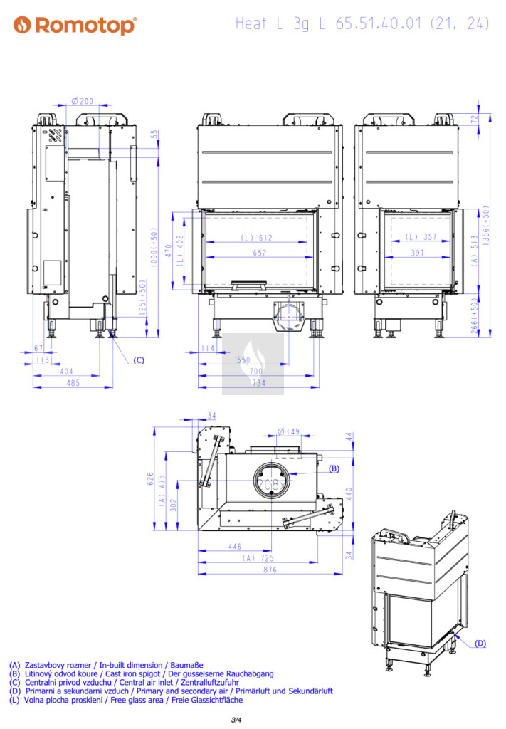 Romotop HEAT L 3G L 65.51.40.26 Légfűtéses kandallóbetét, fekete béléssel