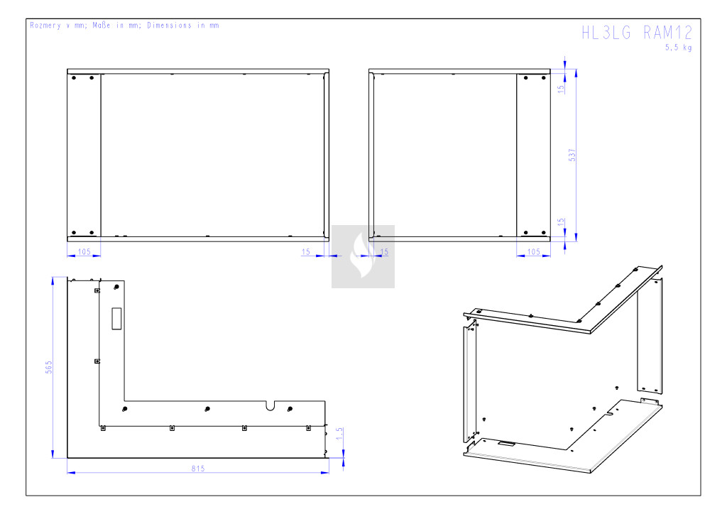 RAM12 takarókeret Romotop HEAT H R/L 3LG kandallóbetéthez