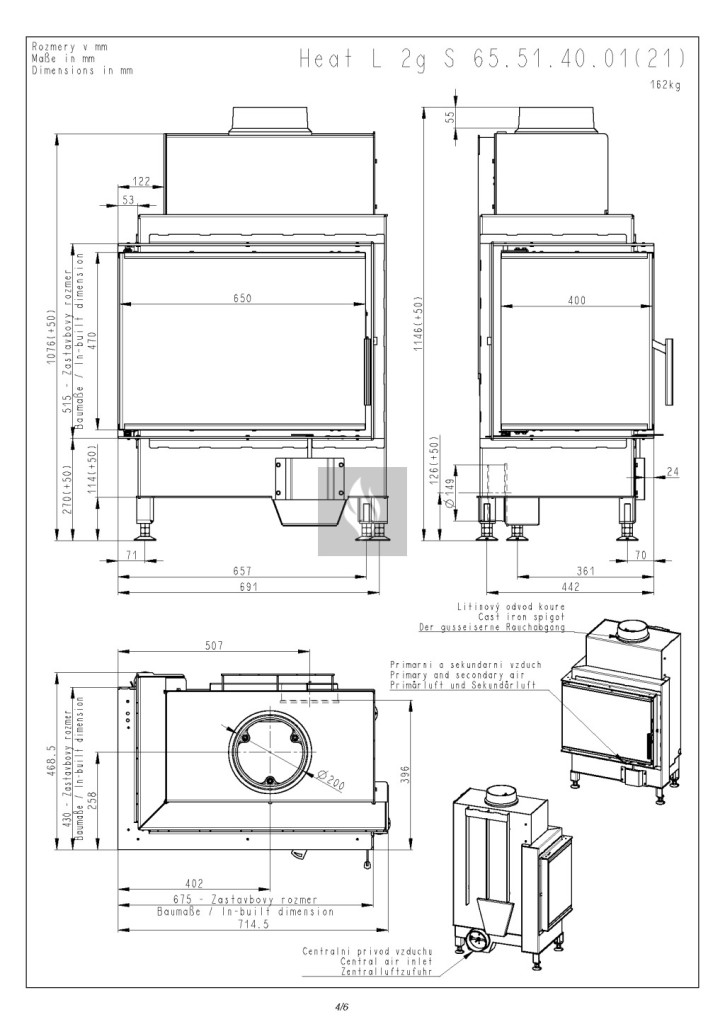 Romotop HEAT L 4G S 65.51.40.26 Légfűtéses kandallóbetét fekete béléssel
