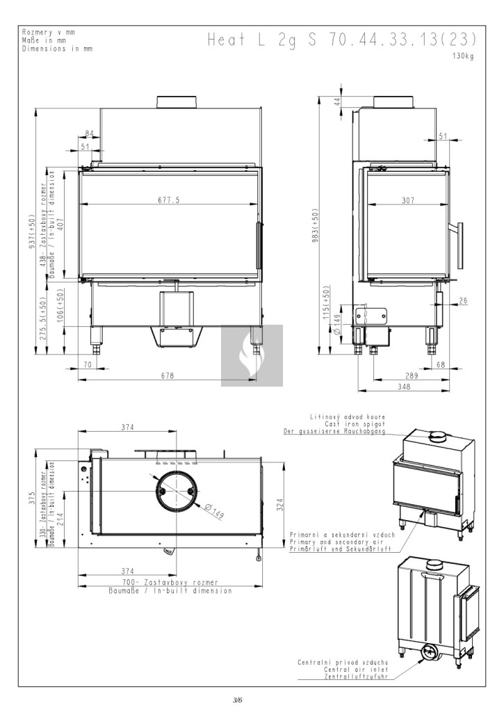 Romotop HEAT L 4G S 70.44.33.26 Légfűtéses kandallóbetét fekete béléssel