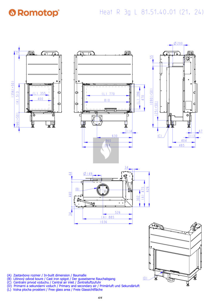 Romotop HEAT R 3G L 81.51.40.24 Légfűtéses kandallóbetét