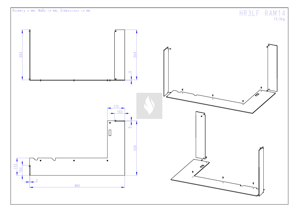 RAM14 takarókeret Romotop HEAT H R/L 3LF kandallóbetéthez