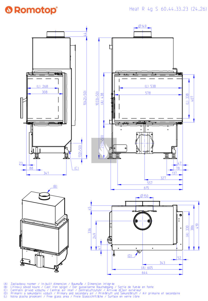 Romotop HEAT R 4G S 60.44.33.26 Légfűtéses kandallóbetét fekete béléssel