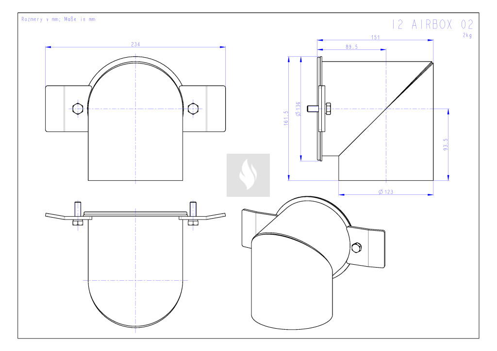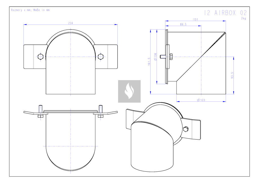 Megkönnyíti a külső légbevezetés (EAI) alulról történő csatlakoztatását. A kapcsolódó termékekben szereplő kandallóbetétekhez alkalmas.
